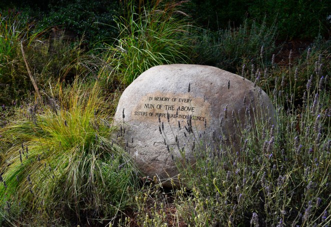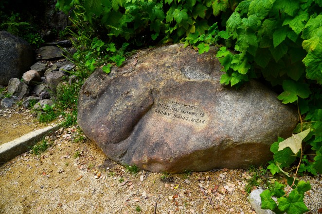 The overwhelming amount of information in the Circle of Friends is now distilled here on these boulders to its purest, sweetest, simplest essence. I am grateful for the quiet encounter with one life, or two, and those whose lives were intertwined with them. In this way, throughout the afternoon, I will become more intimately acquainted with the ‘million stories in the naked city‘ in the the most human way possible: one name, one soul, one marker at a time. But it’s never just one soul, is it? Each soul touches other souls, leaving lasting impressions. In these garden encounters throughout the day, I recall, over and over again, that in the particular story of the one whom we name, we simultaneously give name and heart to a universal story that plays itself out with countless unique permutations. Each carrying the universal spark of essential truth threading all these stories like beads on a rosary.