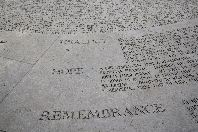 These are the thoughts and memories that have arisen during and subsequent to my visit to the Aids Memorial Grove. There is no tidy “happily ever after” ending to this story. Somehow Mary’s life and her death from AIDs came alive that day and invited me, now in my 63rd year of life, to consider what more there is to learn, what more there is to feel. Though no new understanding comes, I understand better that, like my experience in the memorial grove, there is light and there is shadow in my life and in every life. There is serenity and there is sadness. There is remembrance and there is sacred possibility. There is the comfort of shared pain and grief and the love which is before, during, and after a life – if I look for it. If we each look for it. If we remain present and aware and open to receiving it. There can be healing when, in the company of other wounded travelers, we seek to share the walk and share the healing that awaits us.