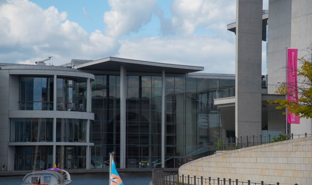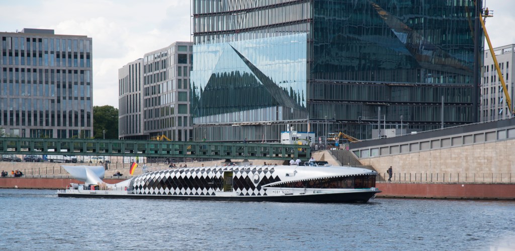 Still jet lagged, but not wanting to miss precious opportunities to see Berlin, we set out on a walk to the river. After walking through an extended market along the curved street we looked down on last night, we finally hit on the river and walked in a westerly direction for about a mile before settling on a river cruise boat. Here a some shots from that lovely ride.