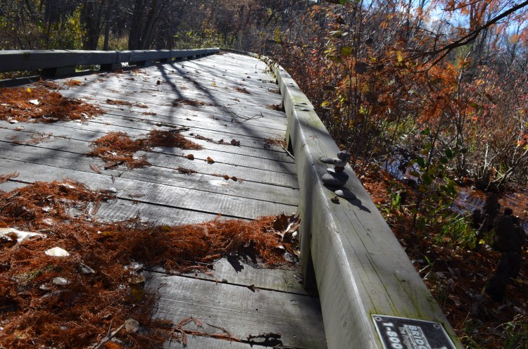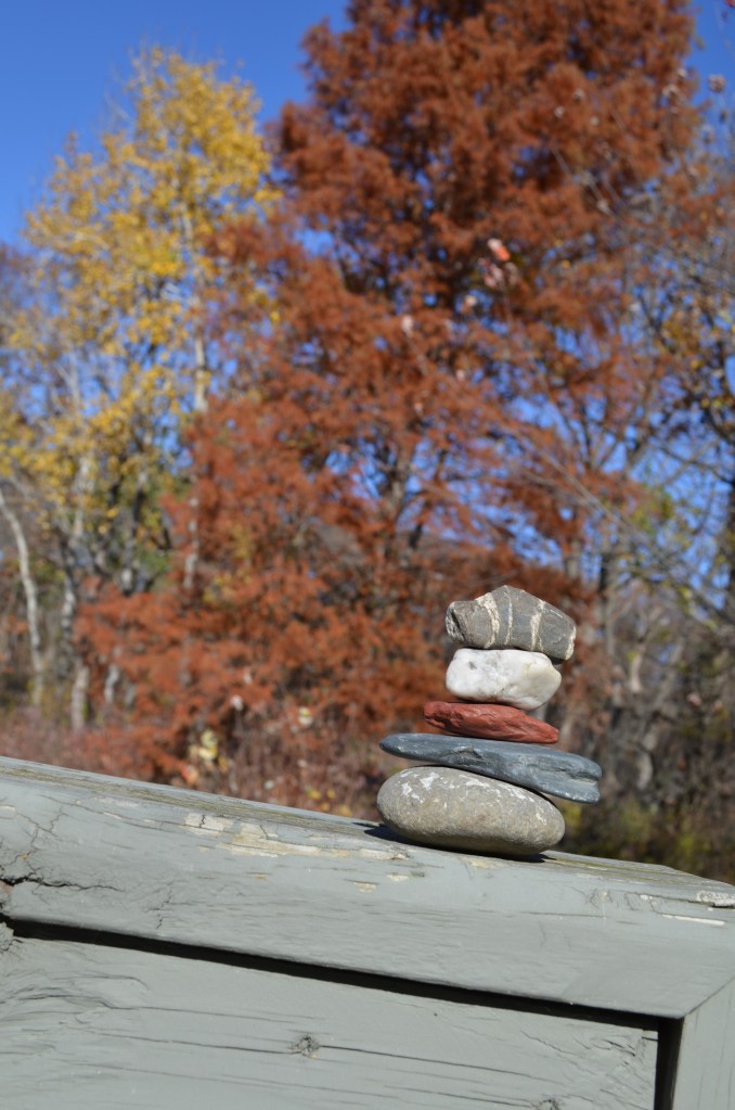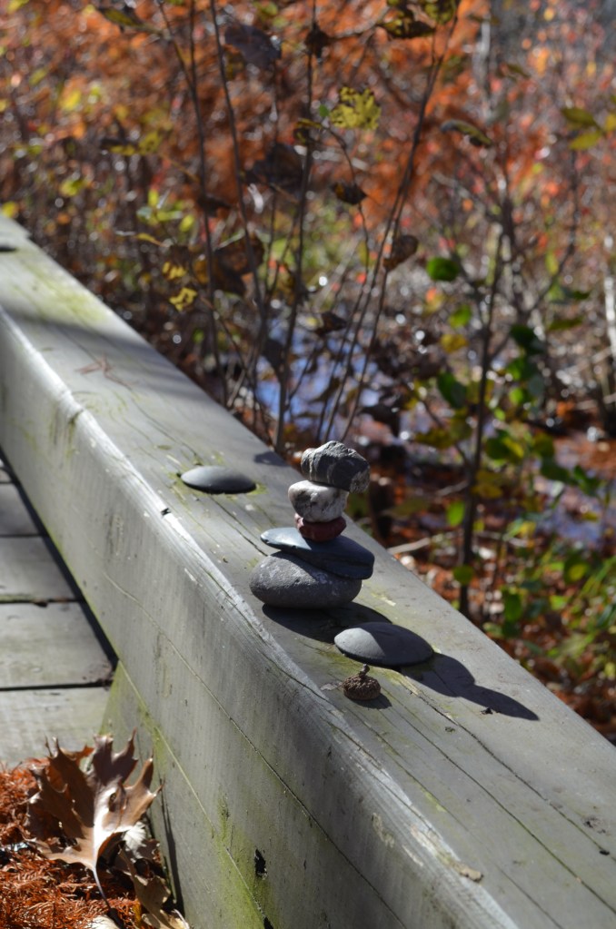 Pondering late afternoon shadows on the bridgeThe shadows reach out to the cairn and the clustered leavesNestled in Lamb’s EarWhispering in Lamb’s EarTree Rings Lament draws us inQuelle dommageTree rings lament beginsCedar Calls CairnResponding to the cedar’s callSigns, signs, everywhere are signs… we obliged and took only our photos and memoriesFace turned to the warming sun