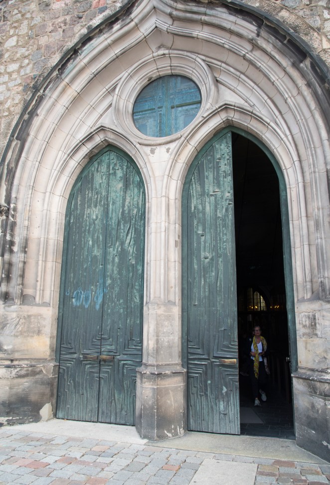 After the river boat excursion on the River Spree, we headed back to our hotel. As we drew near to the hotel, we came upon the Marienkirche, or St. Mary’s Church. The church’s website states “Presumably, the construction of the church as a parish church of the medieval New Town of Berlin was begun in 1270 . The first certain mention can be found in a letter of indulgence from 1294.”